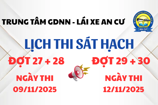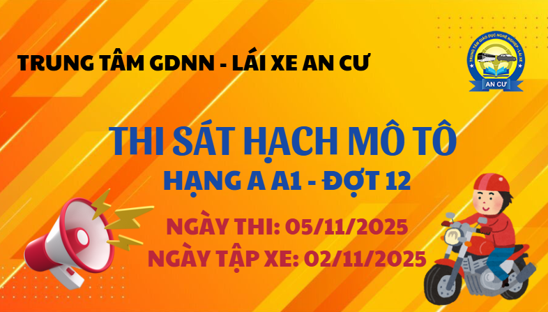 Trung tâm GDNN – Lái xe An Cư xin thông báo đến Quý Thầy/Cô và Anh/Chị học viên: Danh sách dự thi sát hạch Mô tô hạng A A1 Đợt 14 Ngày thi cụ thể sẽ được thông báo sau. Quý Anh/Chị có tên trong danh sách chủ động ôn tập để đạt kết quả…