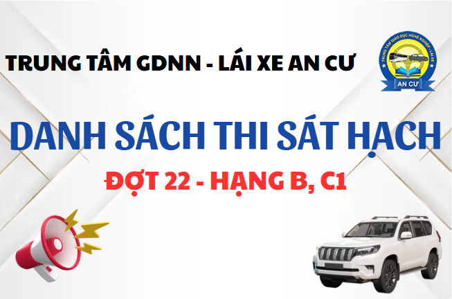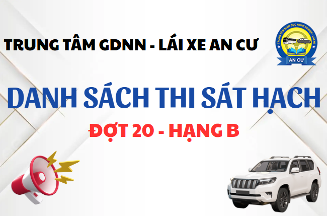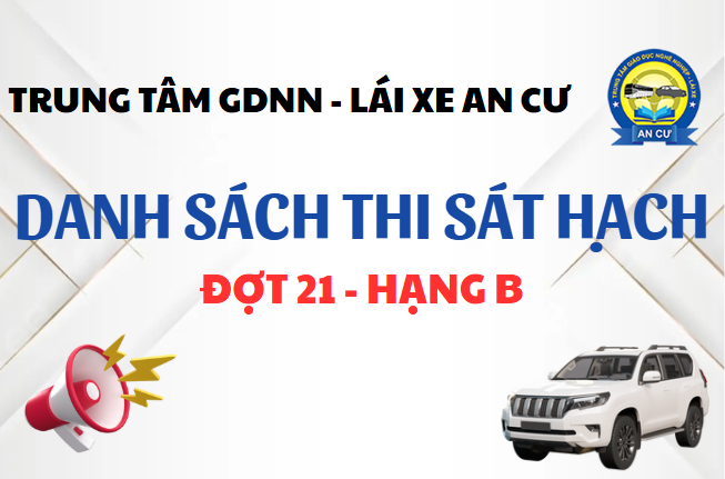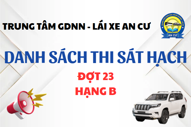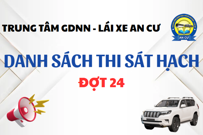 Trung tâm GDNN – Lái xe An Cư xin thông báo đến Quý Thầy/Cô và Anh/Chị học viên: Danh sách dự thi Đợt 24 Ngày thi cụ thể sẽ được thông báo sau. Quý Anh/Chị có tên trong danh sách chủ động ôn tập để đạt kết quả thi tốt nhất. Trân trọng thông báo!…