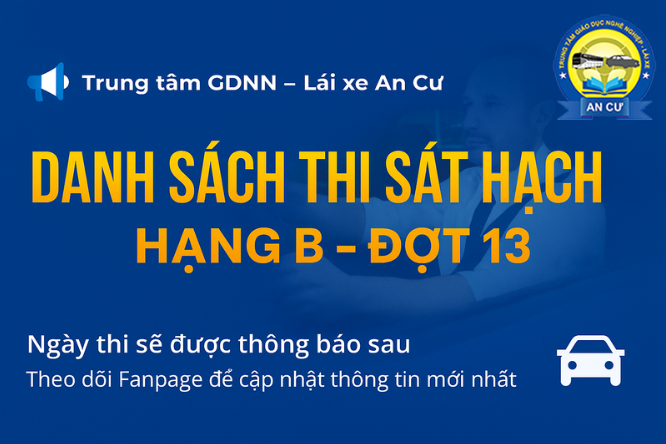 Trung tâm GDNN – Lái xe An Cư xin thông báo đến Quý Thầy/Cô và Anh/Chị học viên: Danh sách dự thi Đợt 15 Ngày thi cụ thể sẽ được thông báo sau. Quý Anh/Chị có tên trong danh sách chủ động ôn tập để đạt kết quả thi tốt nhất. Trân trọng thông báo!…