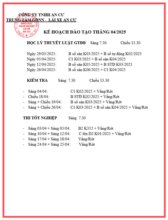 🎉 LỄ KHAI MẠC KỲ THI SÁT HẠCH GIẤY PHÉP LÁI XE HẠNG A, A1 TẠI TRUNG TÂM GDNN LÁI XE AN CƯ📅 Ngày 30/05/2025 Sáng nay, tại Trung tâm Giáo dục nghề nghiệp Lái xe An Cư, Hội đồng Sát hạch Công an tỉnh Bình Dương đã long trọng tổ chức lễ khai mạc…