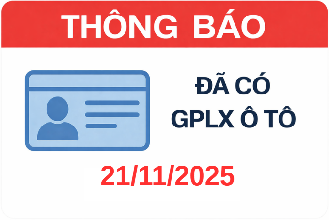 THÔNG BÁO NHẬN GPLX Ô TÔ ĐỢT SÁT HẠCH 12/12/2025