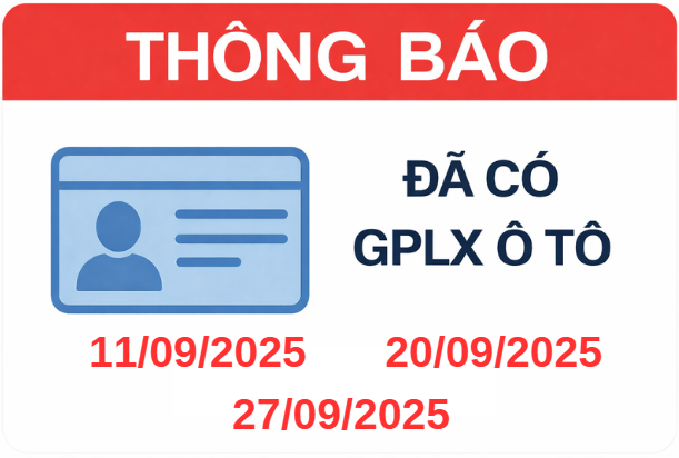 THÔNG BÁO NHẬN GPLX Ô TÔ ĐỢT SÁT HẠCH 11, 20 & 27/09/2025