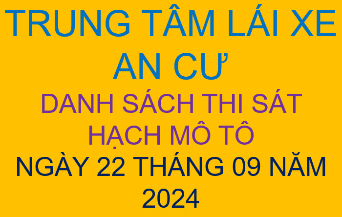 DANH SÁCH THI SÁT HẠCH NGÀY 22 THÁNG 09 NĂM 2024
